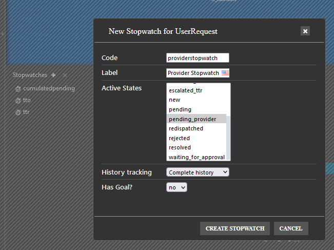 Add a stopwatch attribute on UserRequest class, to count when the ticket is in “pending_provider” state.