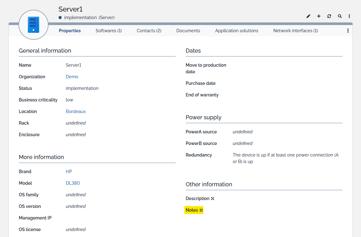 If you navigate to the details of a Server in iTop, you should now see the following: