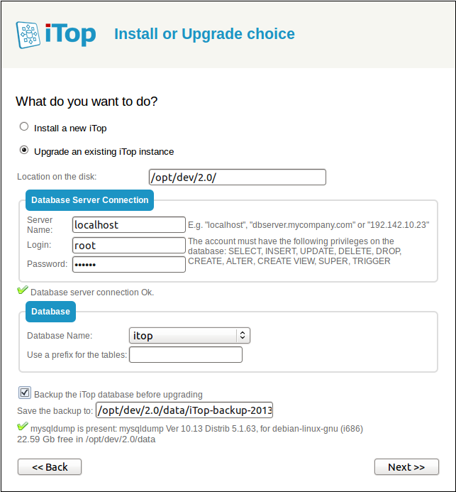 Make sure that the file conf/production/config-itop.php is writable for the web server (on Windows: right click to display the file properties and uncheck the read-only flag; on Linux change the rights of the file), then launch the iTop installation by pointing your browser to http://your_itop/setup/