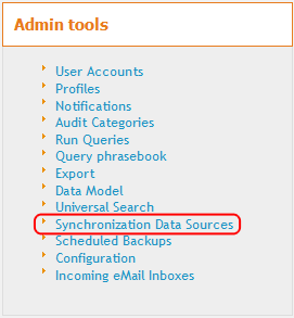 The Data Sources are defined using the menu Admin Tools/Synchronization Data Sources.