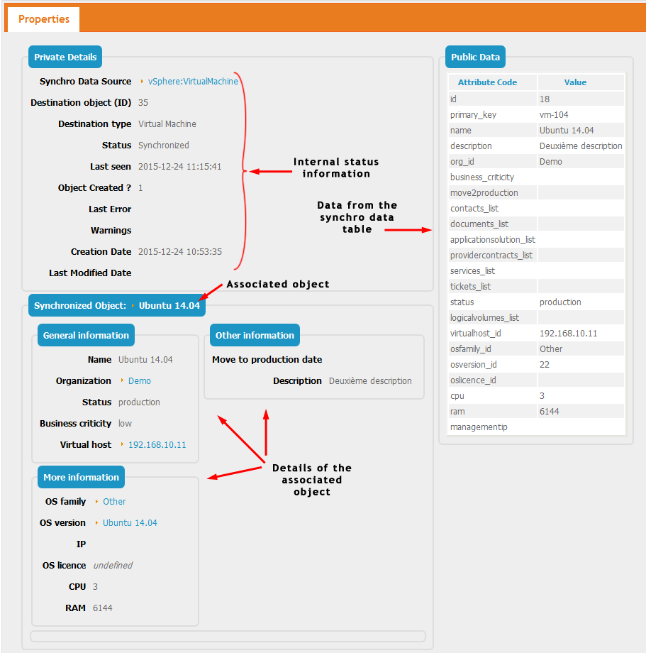 The associated object in iTop was left unchanged (