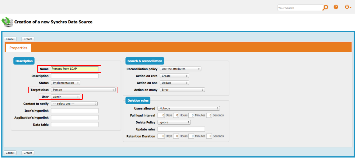 Create and configure a Synchro Data Source for synchronizing one class of objects into iTop