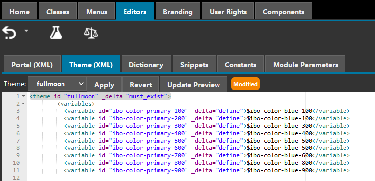 <variables> <variable id="ibo-color-primary-100" _delta="define">$ibo-color-blue-100</variable> <variable id="ibo-color-primary-200" _delta="define">$ibo-color-blue-100</variable> <variable id="ibo-color-primary-300" _delta="define">$ibo-color-blue-300</variable> <variable id="ibo-color-primary-400" _delta="define">$ibo-color-blue-400</variable> <variable id="ibo-color-primary-500" _delta="define">$ibo-color-blue-500</variable> <variable id="ibo-color-primary-600" _delta="define">$ibo-color-blue-500</variable> <variable id="ibo-color-primary-700" _delta="define">$ibo-color-blue-600</variable> <variable id="ibo-color-primary-800" _delta="define">$ibo-color-blue-800</variable> <variable id="ibo-color-primary-900" _delta="define">$ibo-color-blue-900</variable> </variables>