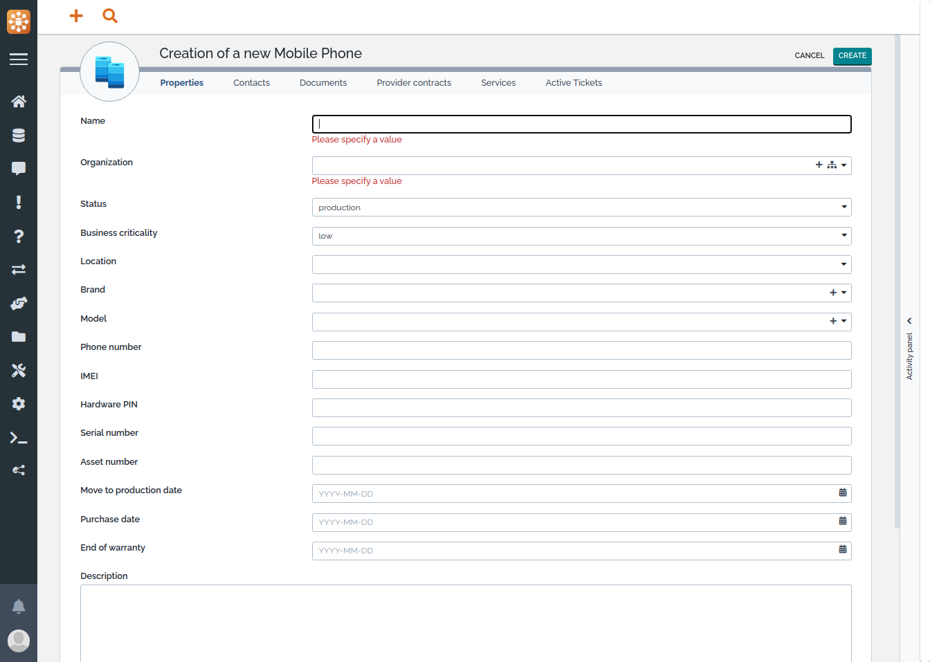 • Impacts: a Mobile Phone impacts the Application Solutions that this Mobile Phone is part of and all the contacts (Persons, Teams) directly linked to the Mobile Phone.