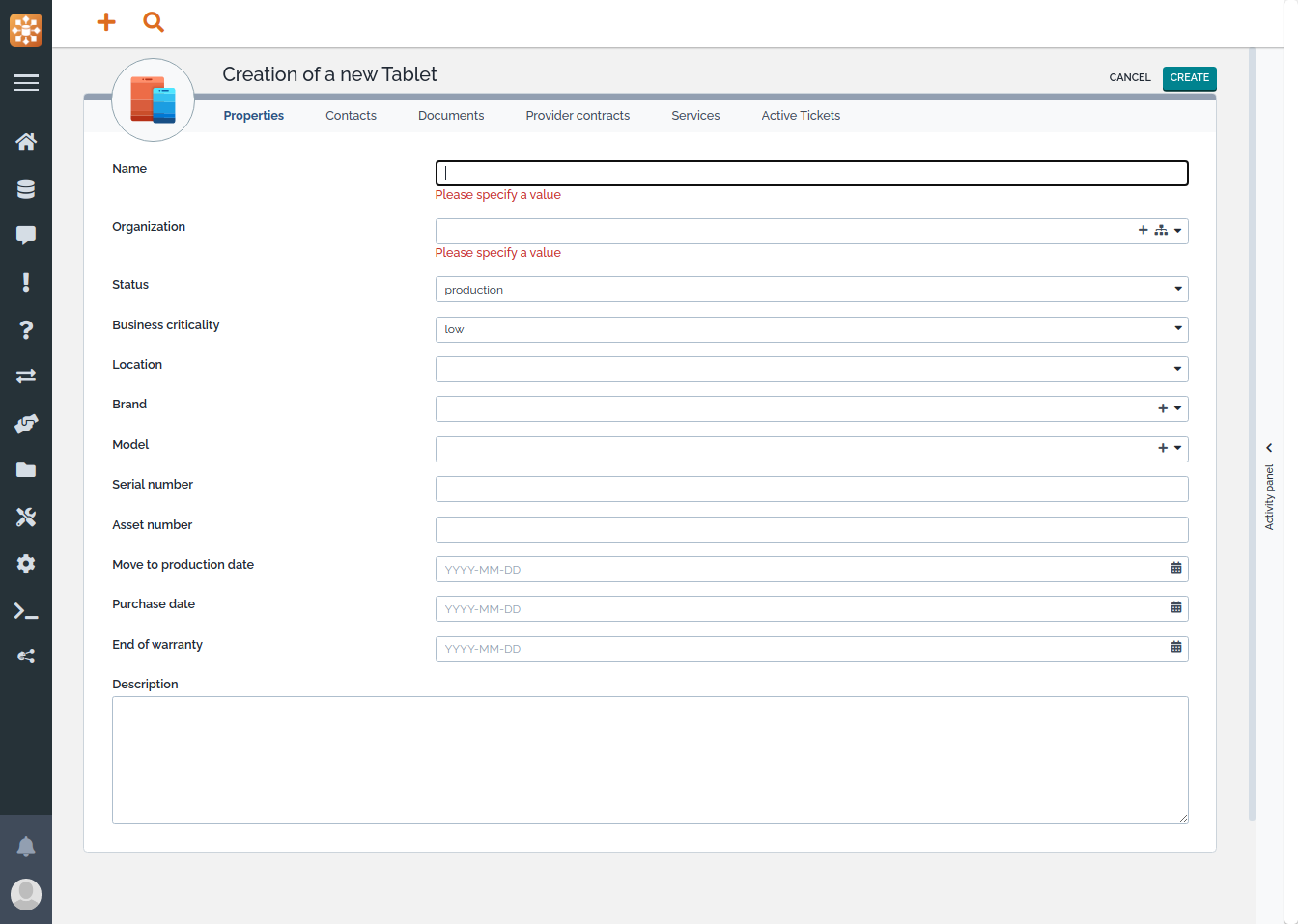 • Impacts: a Tablet impacts the Application Solutions that this Tablet is part of and all the contacts (Persons, Teams) directly linked to the Tablet.