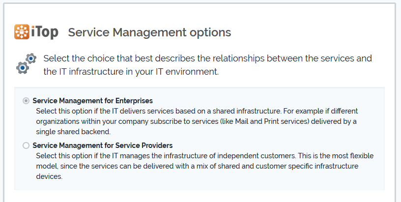 Service management comes in two flavors in iTop. Choose the option that best represents your situation: