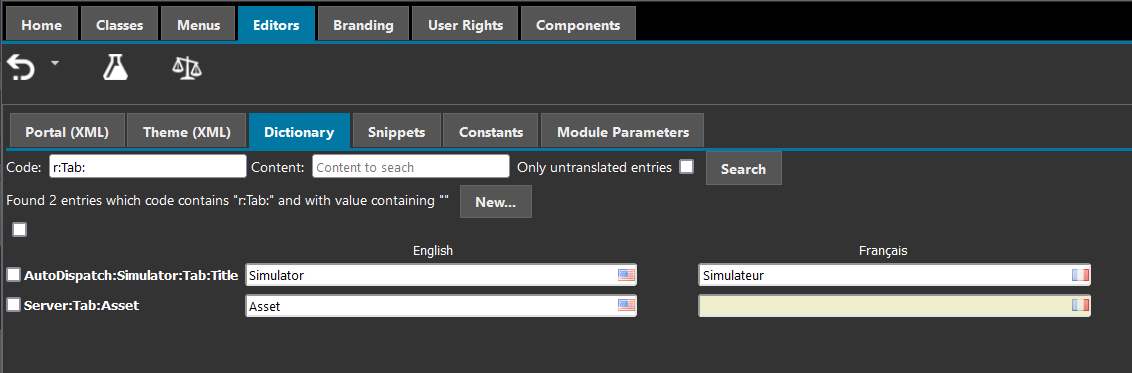 the Editors tab, then Dictionnary and