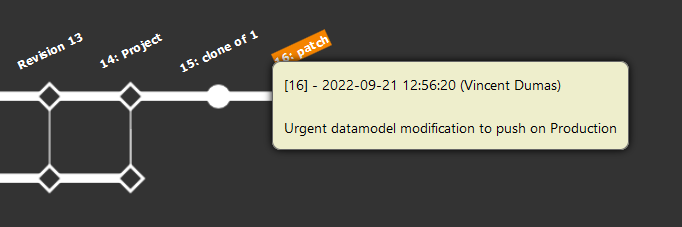 done between the clone of the production (revision 14) and the end of the patch revision (#19).