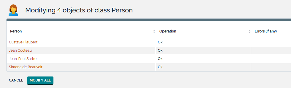 Inspect the list to check if any errors are reported in the Error column, and when ready, click on Modify All to actually perform the bulk modification.