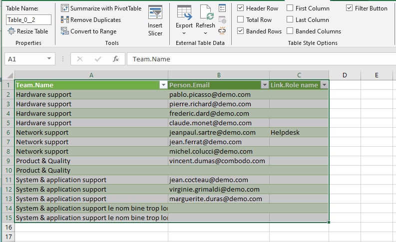 Click the OK button and Excel displays the result of the query. The language used for the display of columns corresponds to the default language of your login in iTop.