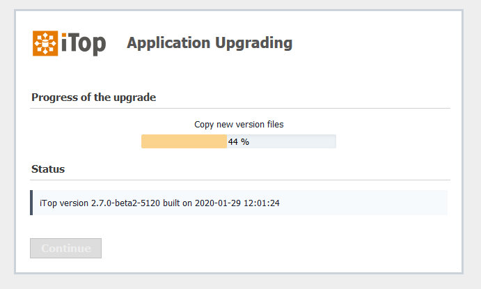 This action, limited to iTop Administrators, allow to upgrade the iTop application code from your web browser, without the need to connect to the iTop server.