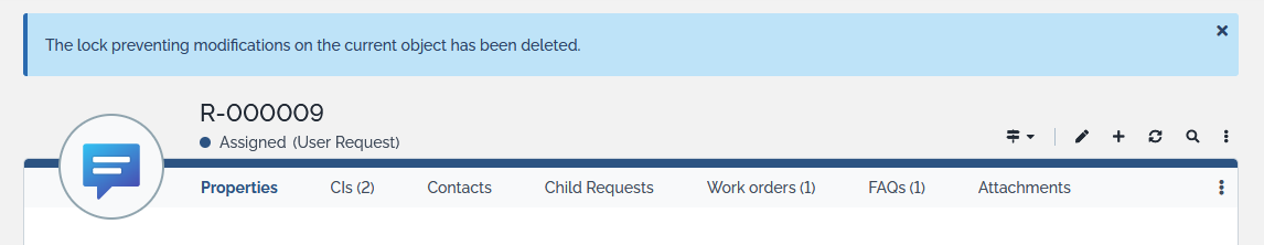 Once the lock has been removed, the detail view of the object is displayed again, with a feedback message at the top