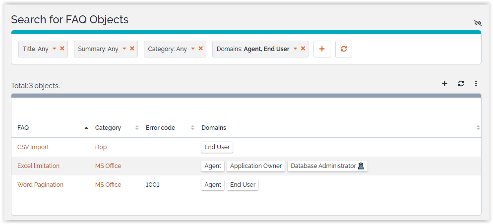 SELECT FAQ WHERE domains MATCHES 'agent' AND domains MATCHES 'enduser'