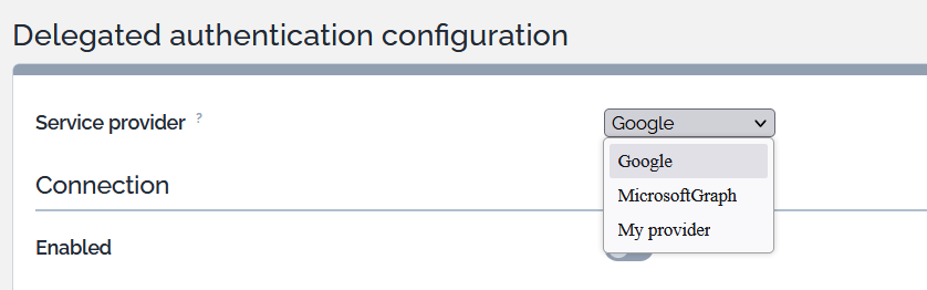 • The drop down list will restrict to the listed providers. but it will also propose any other provider listed in combodo-hybridauth configuration section (cf “My provider” in below example section)