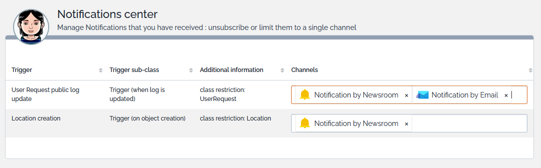 OnMentiontriggers, we usually want to deny users to unsubscribe from all channels, they will have to keep at least one, so we are sure that they are notified. -