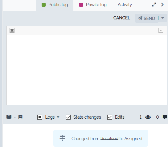 • you directly have the possibility to enter something in the caselog and sent it (Entry form opened by default).