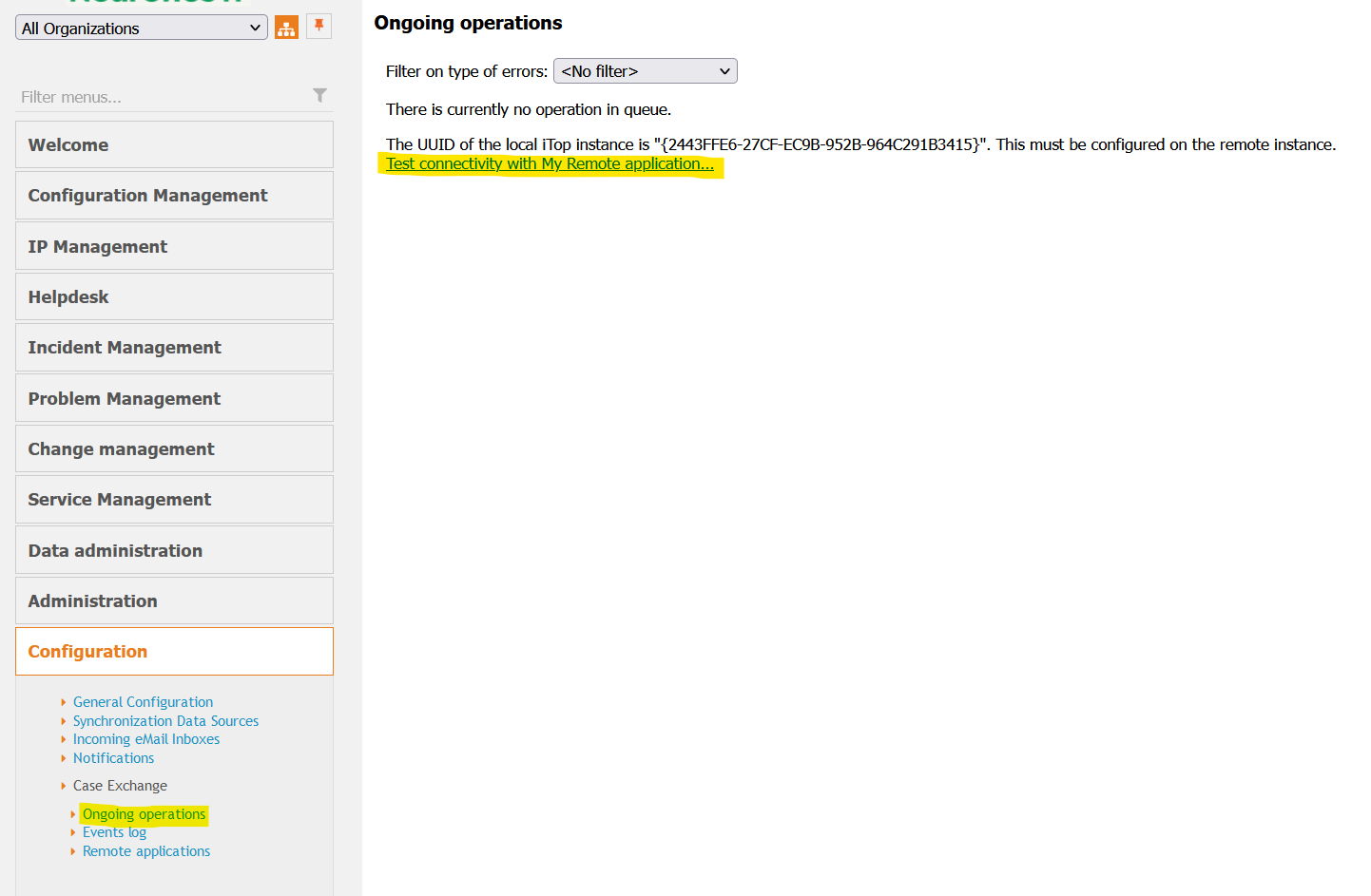 There is one trigger that can be configured for managing case exchange errors : Trigger (on case exchange error) It is recommended to suppress them in the iTop console
