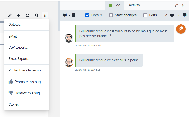 A new menu entry limited to Administrator is available in the details page of an object having a broken caselog. It's not proposed on object without caselog issue.