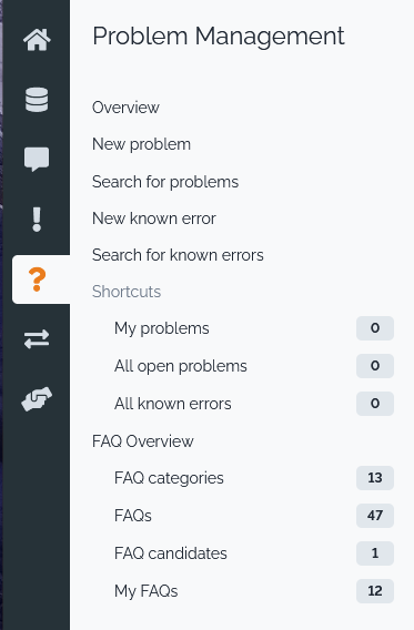 Add a menu to list the Tickets candidates for a FAQ still to be written. Menu named âFAQ candidateâ under menu âProblem Management/FAQ overviewâ. Also available in the âFAQ overviewâ new dashboard.