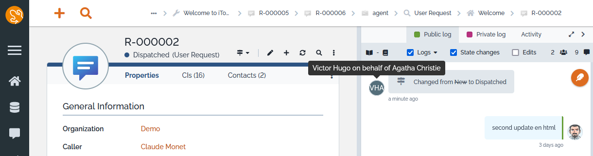 Using this extension someone allowed can āImpersonateā another user and navigate in iTop exactly as the impersonated user would do.