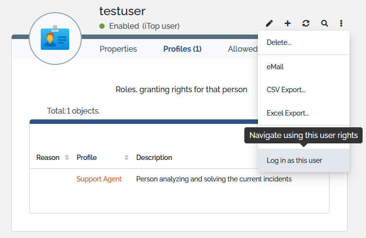 One of your users complains that he can't see a menu or an object in iTop and you are not sure if this is an access right issue or a training issue. If you have faced this issue and felt powerless, then this extension is for you.