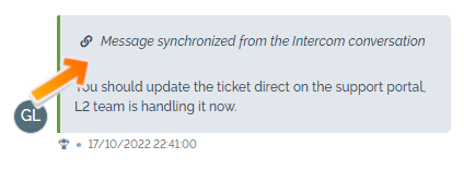 Once an Intercom conversation is linked to an iTop ticket, new messages in the conversation will update the ticket's logs. \ This messages will be identified in iTop by a disclaimer message