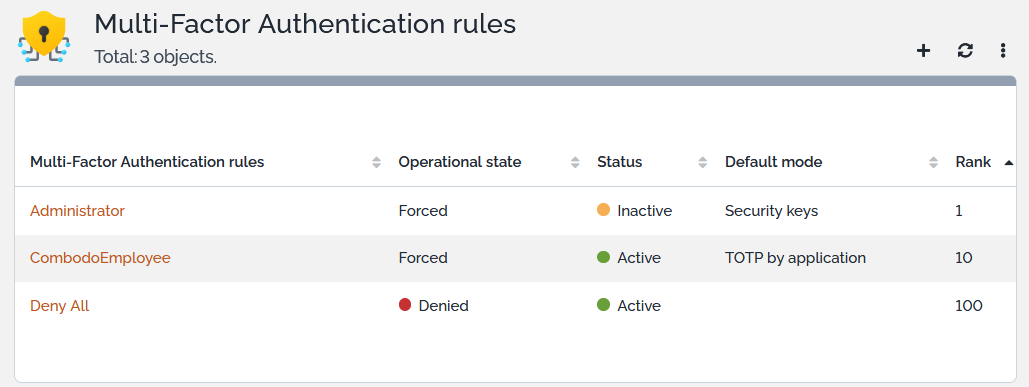A rule allow to force, enable or deny usage of MFA to Users matching the Profiles and Organizations of the rule