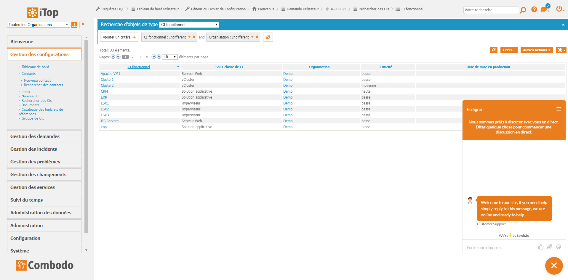 - Integration of the tawk.to chat in iTop (both backoffice & portal)