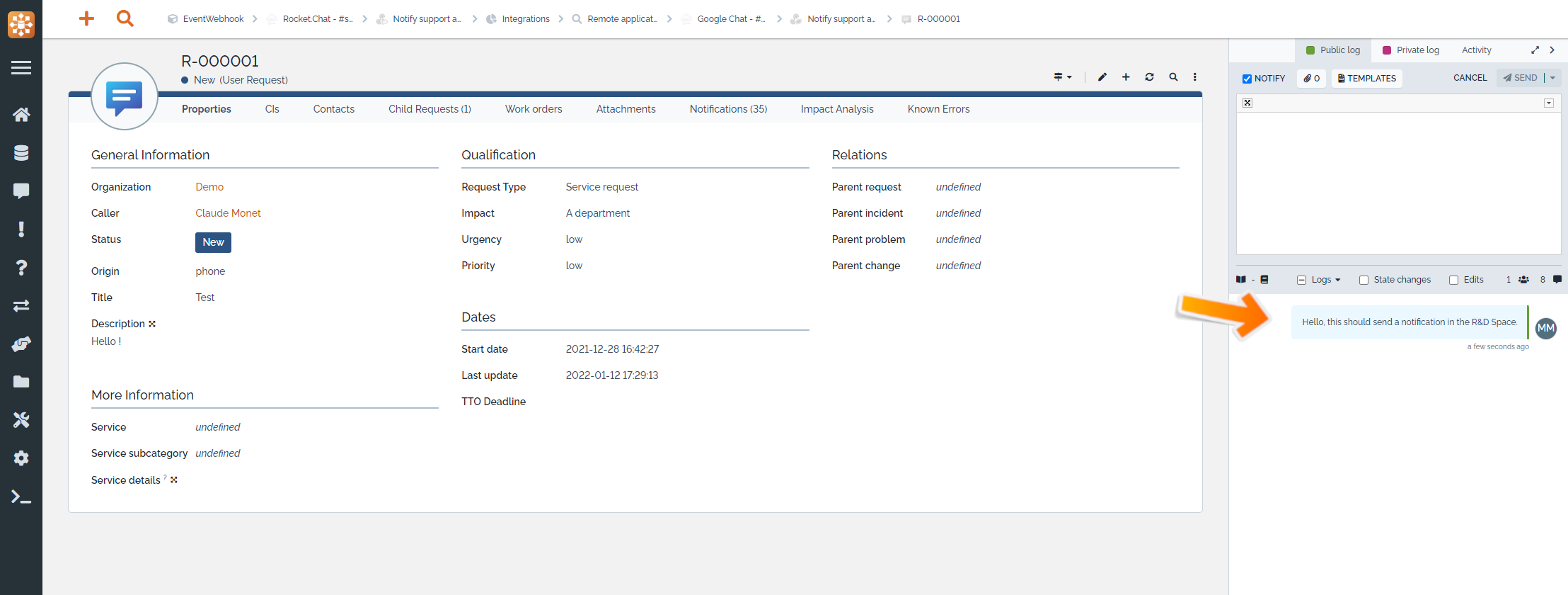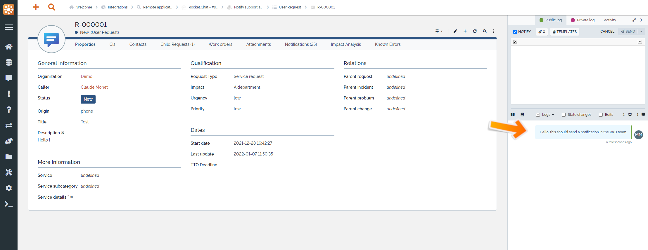 Rocket.Chat notificationto send a message to a Rocket.Chat channel / user -