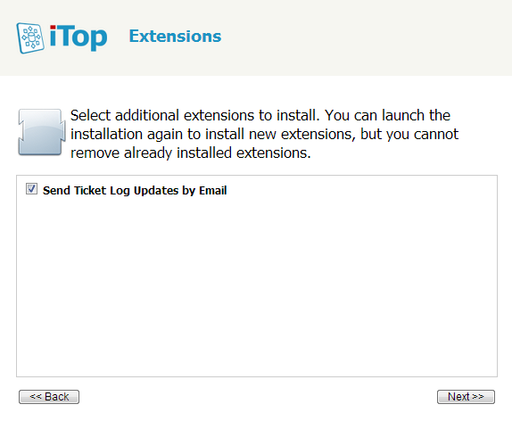 Finally check the module “Send Ticket Log Update by Email” in the list of extensions at the end of the interactive wizard. Then complete the installation.