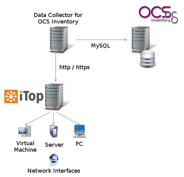 This stand-alone application collects information from a single OCS Inventory NG server in order to populate the iTop CMDB with the collected Servers, PCs and Virtual machines. The collector uses the iTop data synchronization engine to synchronize the information between OCS Inventory and iTop.