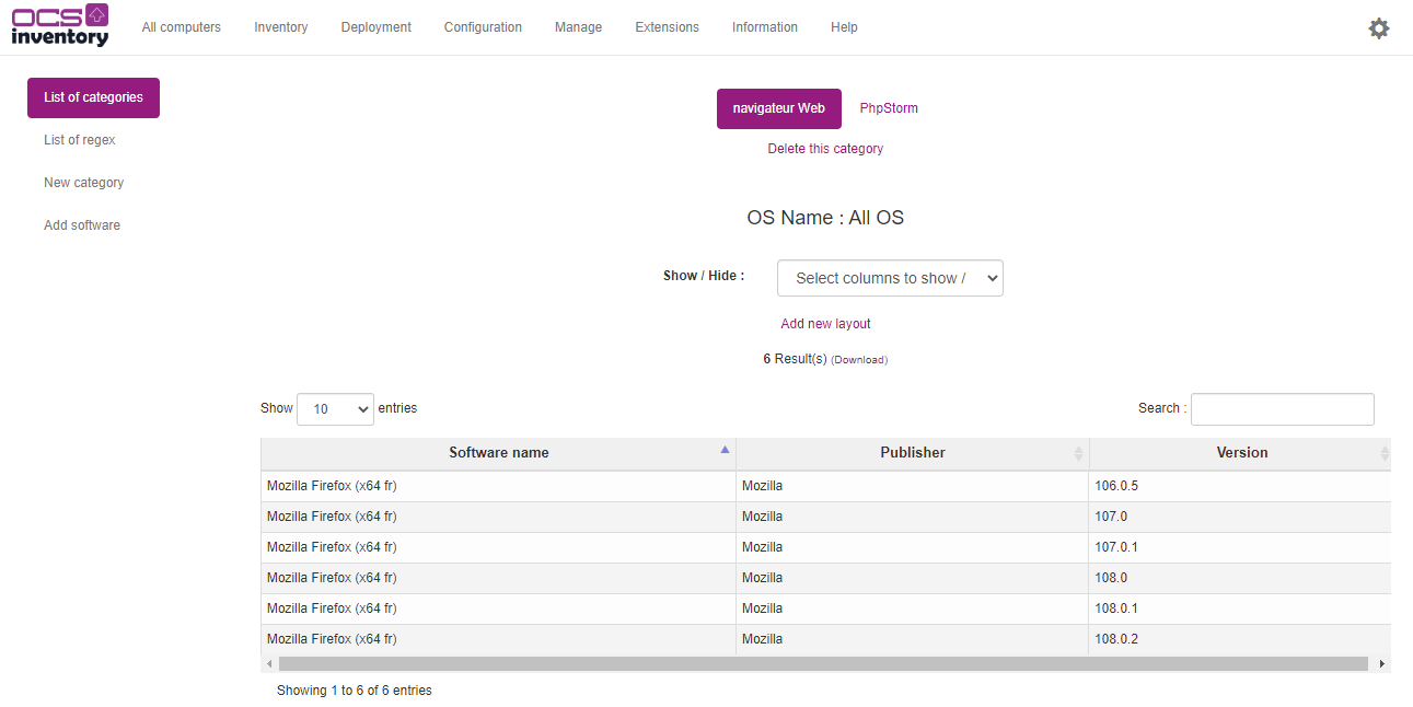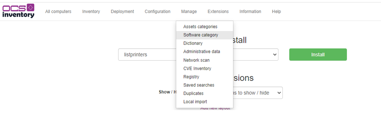 Configure Software categories in OCS