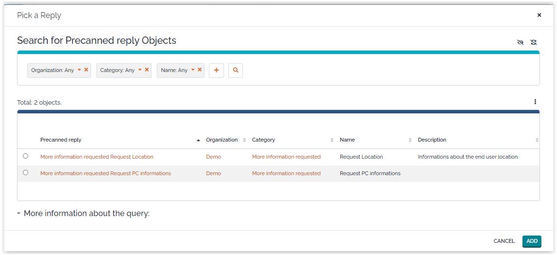 Support of multi-tenancy: each Organization can have its list of precanned replies.