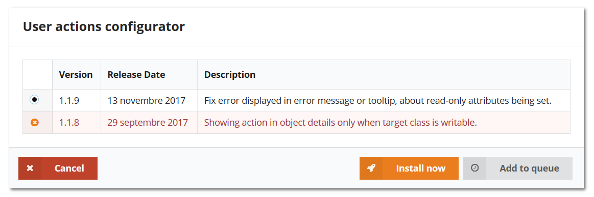 Bonus the incompatibility between the iTop version and extension versions is handled automatically!