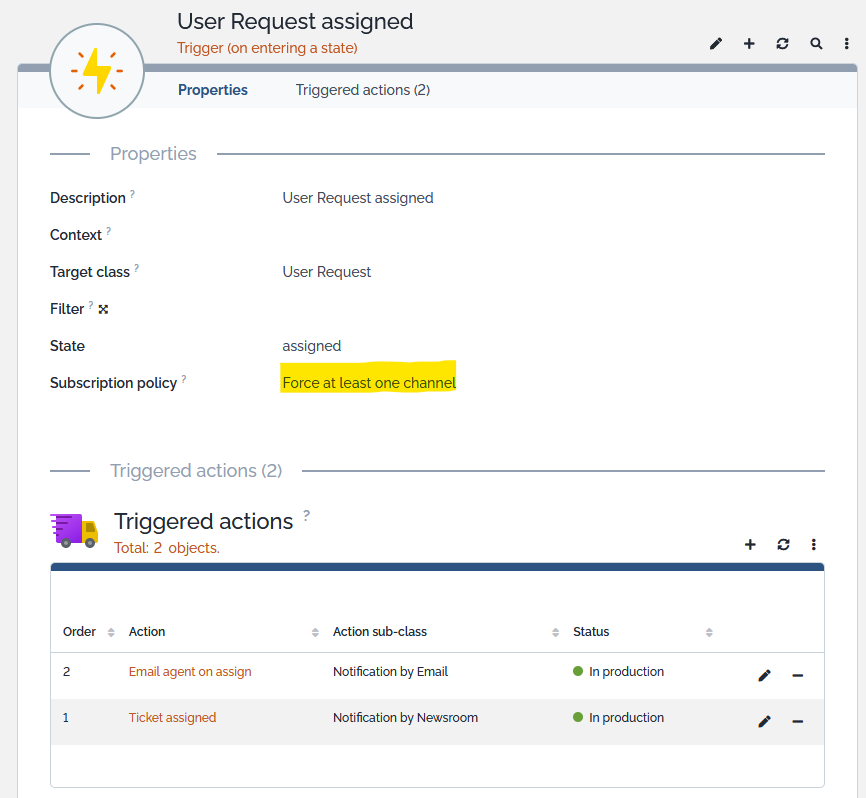 Triggers define when notifications have to be sent. Example: when a ticket reaches the state “assigned”.