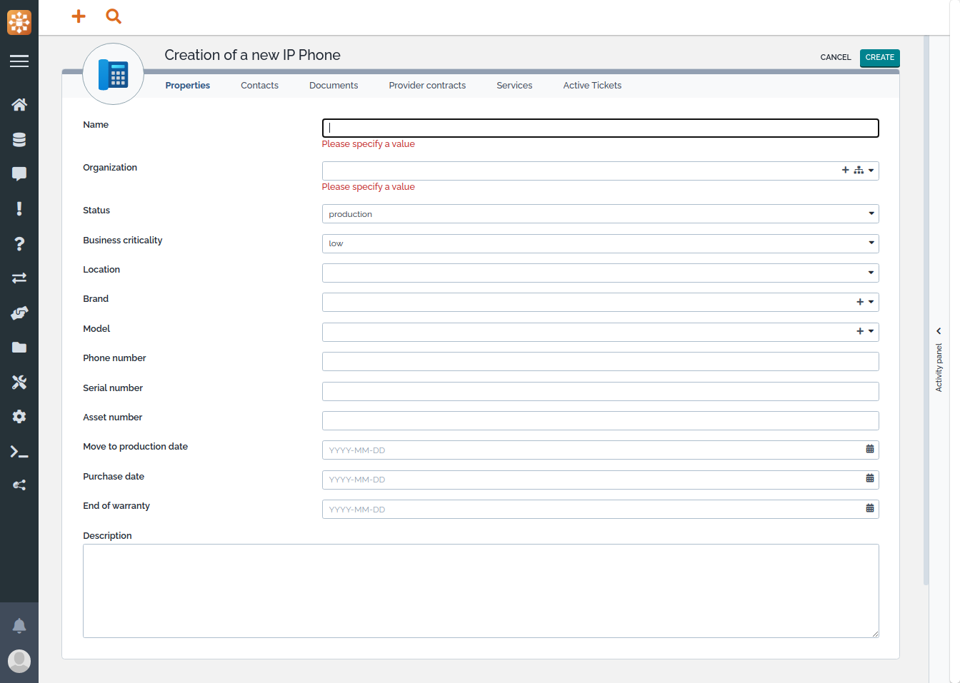 document in iTop any kind of computer peripheral, for example: