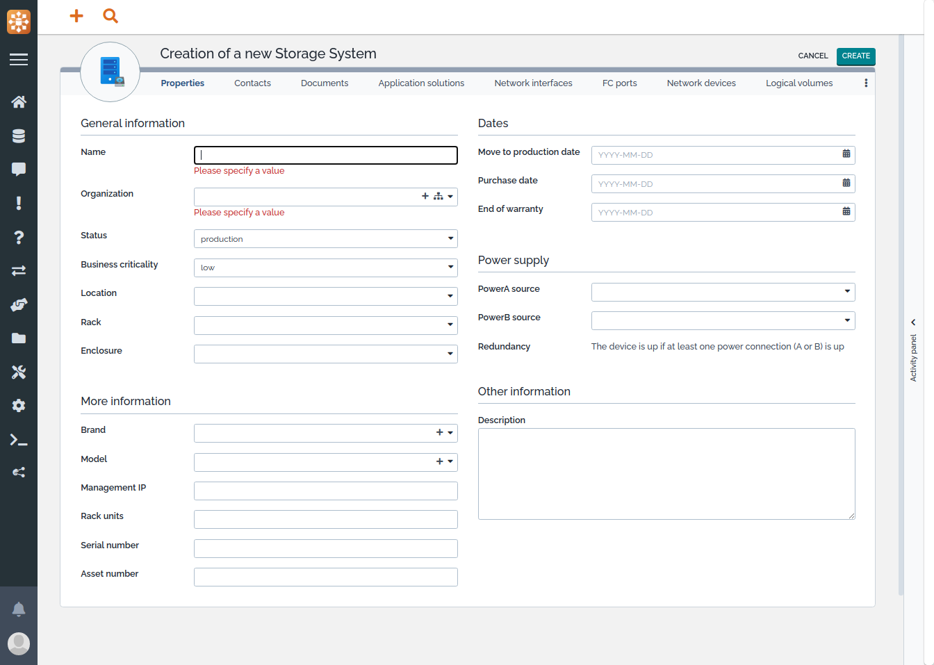 • Impacts: a Storage System impacts the Logival Volumes hosted on it, the Application Solutions that this Storage System is part of and all the contacts (Persons, Teams) directly linked to the Storage System.