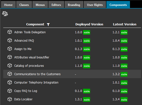 • An obsolete version, generates a warning icon targeted to Component User to highlight the fact that they should upgrade that component.