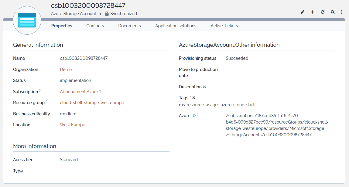 Locations defined in Azure are mapped to standard iTop location objects. For that purpose, the attribute “code” is added to the standard datamodel.
