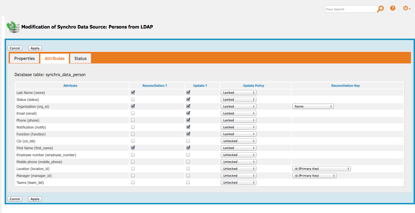 • Create and configure a Synchro Data Source for synchronizing one class of objects into iTop
