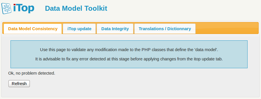 Once all the errors have been fixed, you can apply the modifications to iTop by using “Update iTop Code” button on the second tab of the toolkit: