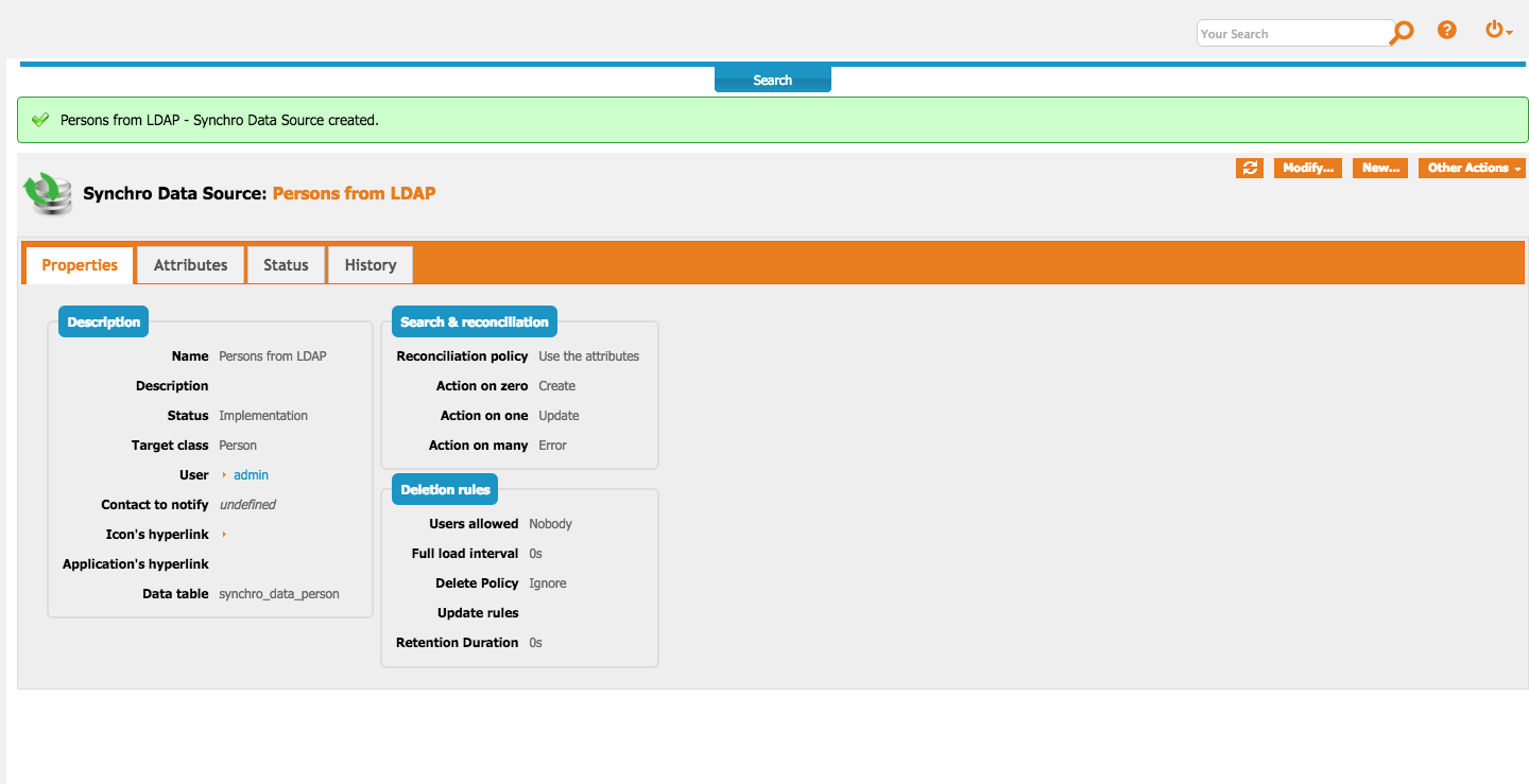 Create and configure a Synchro Data Source for synchronizing one class of objects into iTop