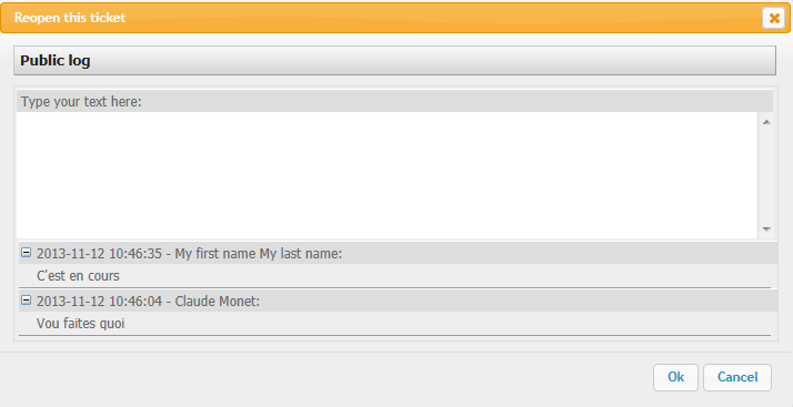 If the end user reopen the ticket, he is prompted to enter a comment in the public log