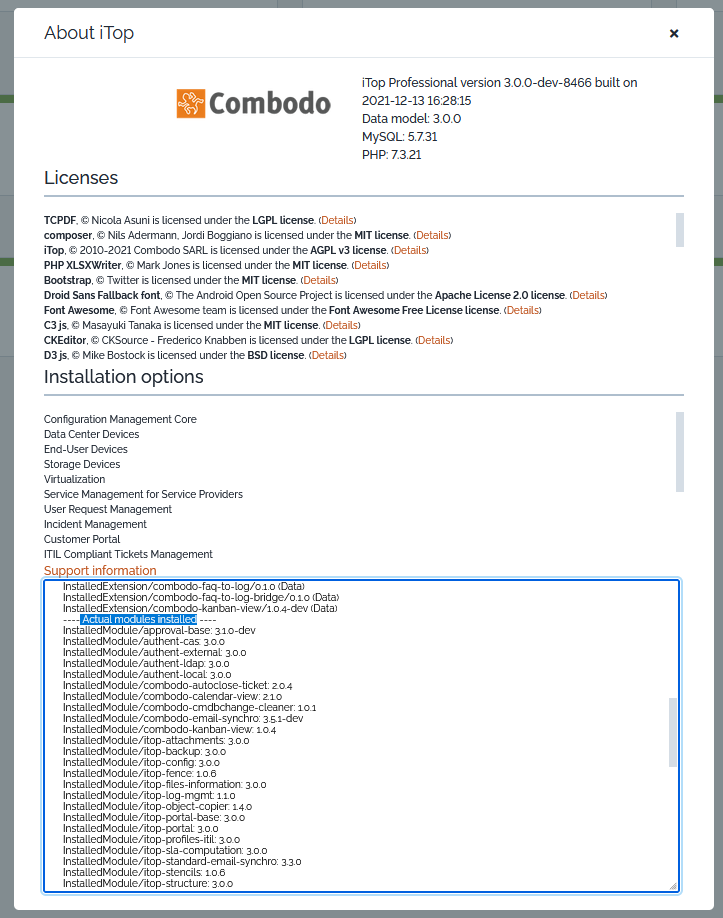 Export: Command line interface which can be used within a script. There is an interactive version and a CLI legacy version since iTop 2.2.x