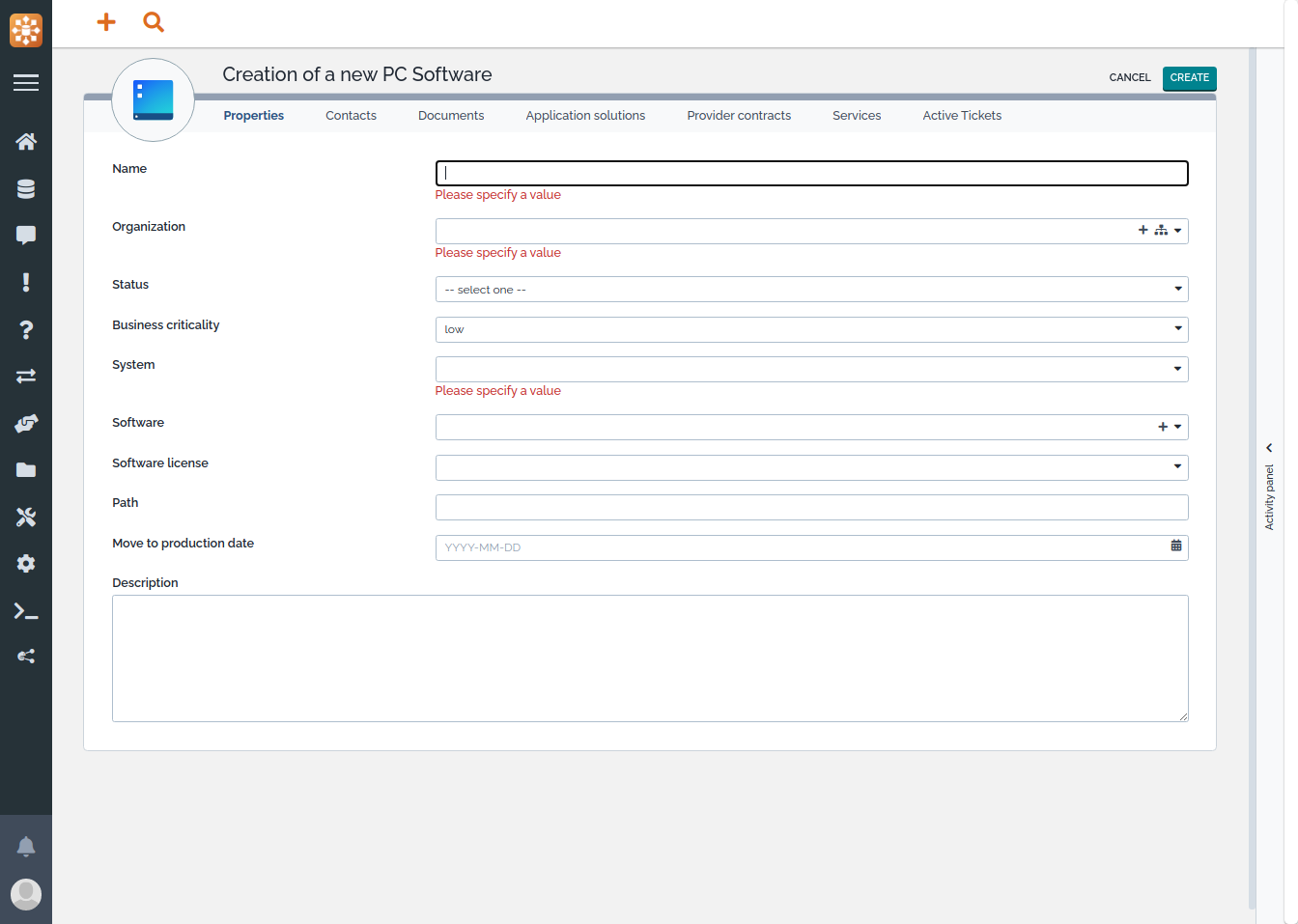 The Configuration Management module is mandatory module of iTop. It contains the definition of all the basic building blocks of the CMDB: Organizations, Contacts (Persons and Teams) as well as the usual physical devices (Servers, Network Devices…), software elements (DB Server, Database Schemas, Licences, Patches…) and the relations between all these objects.