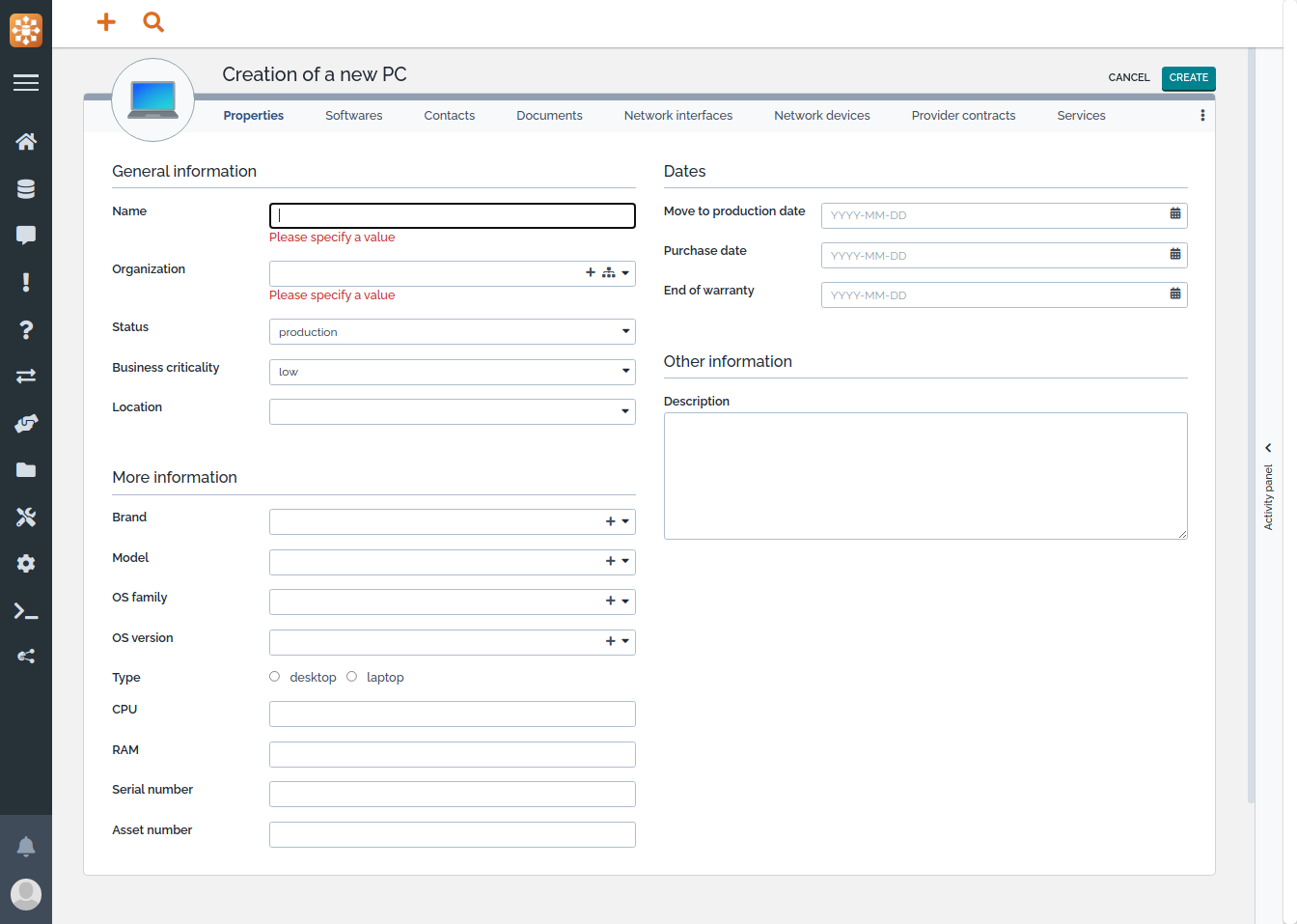 document in iTop any kind of computer peripheral, for example:
