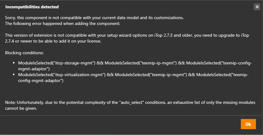add components to its iTop, selecting the version they want