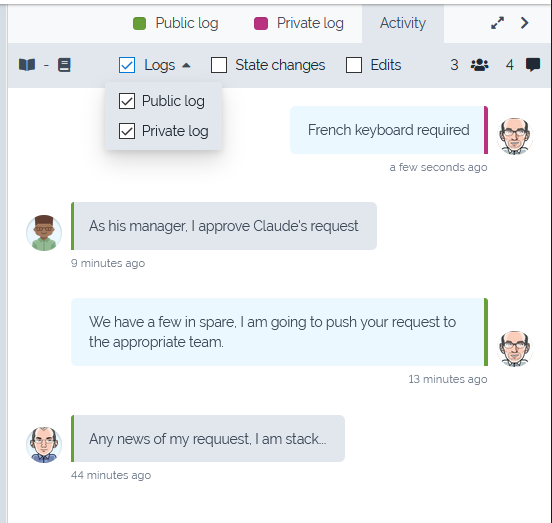 In this part of the screen, that we have named the “activity panel”, you retrieve the logs and the history, all merged in a single timeline, which makes it more efficient to understand the full history.