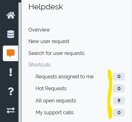 When you click on a menu group icon or title, it opens a second bar of menus with all the sub-menus of that group. Count in query menus For the sub-menus which are of type predefined queries, then the number of objects returned by the query is displayed: