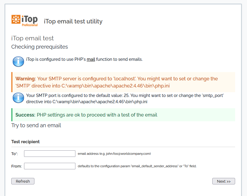 http://<itop server location>/setup/email.test.php